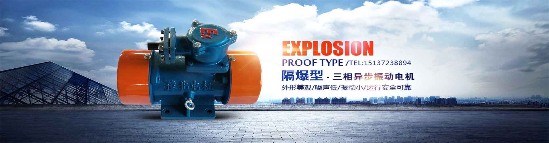 防爆振動電機是在轉子軸兩端各安裝一組可調偏心塊,利用軸及偏心塊高速旋轉產生的離心力得到激振力。振動電
